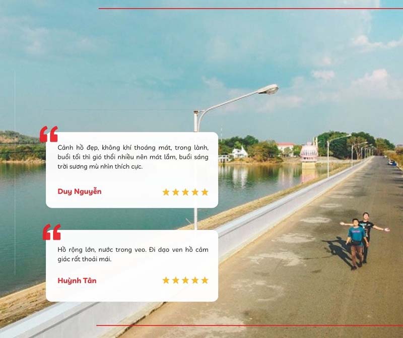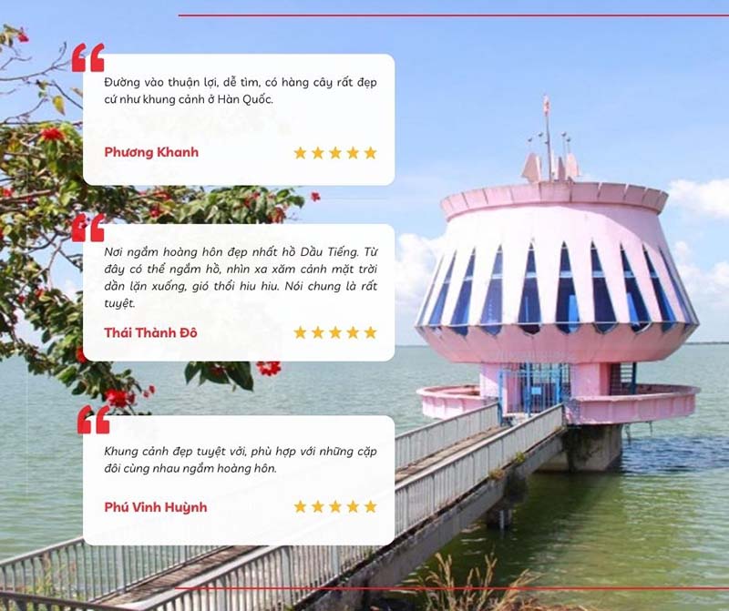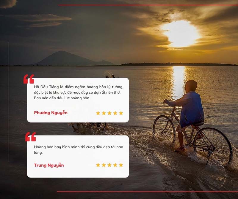 Du khách thích thú và để lại cảm nhận về khung cảnh bình minh và hoàng hôn tại điểm tham quan hồ Dầu Tiếng