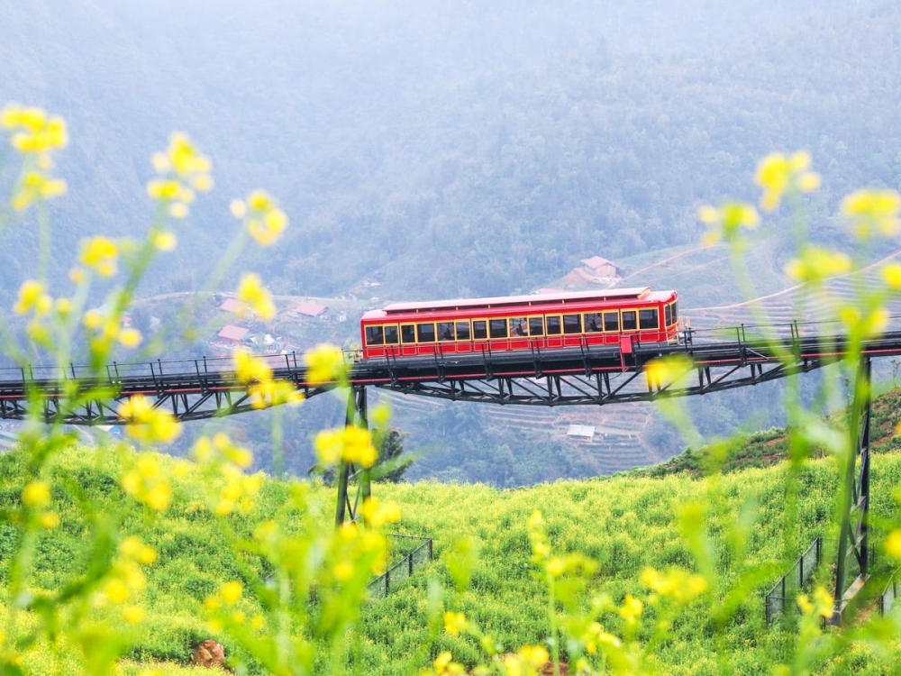Following the cable car, Sun Group continued to introduce a series of new attractions and infrastructure, shaping a richly diverse and captivating destination. Among them is the Mường Hoa mountain railway—the most modern of its kind in Vietnam—launched in March 2018. Connecting Hotel de la Coupole – MGallery in Sa Pa town center to the cable car departure station, the railway reduces travel time to just six minutes, compared to 15–20 minutes by car along steep mountain roads.