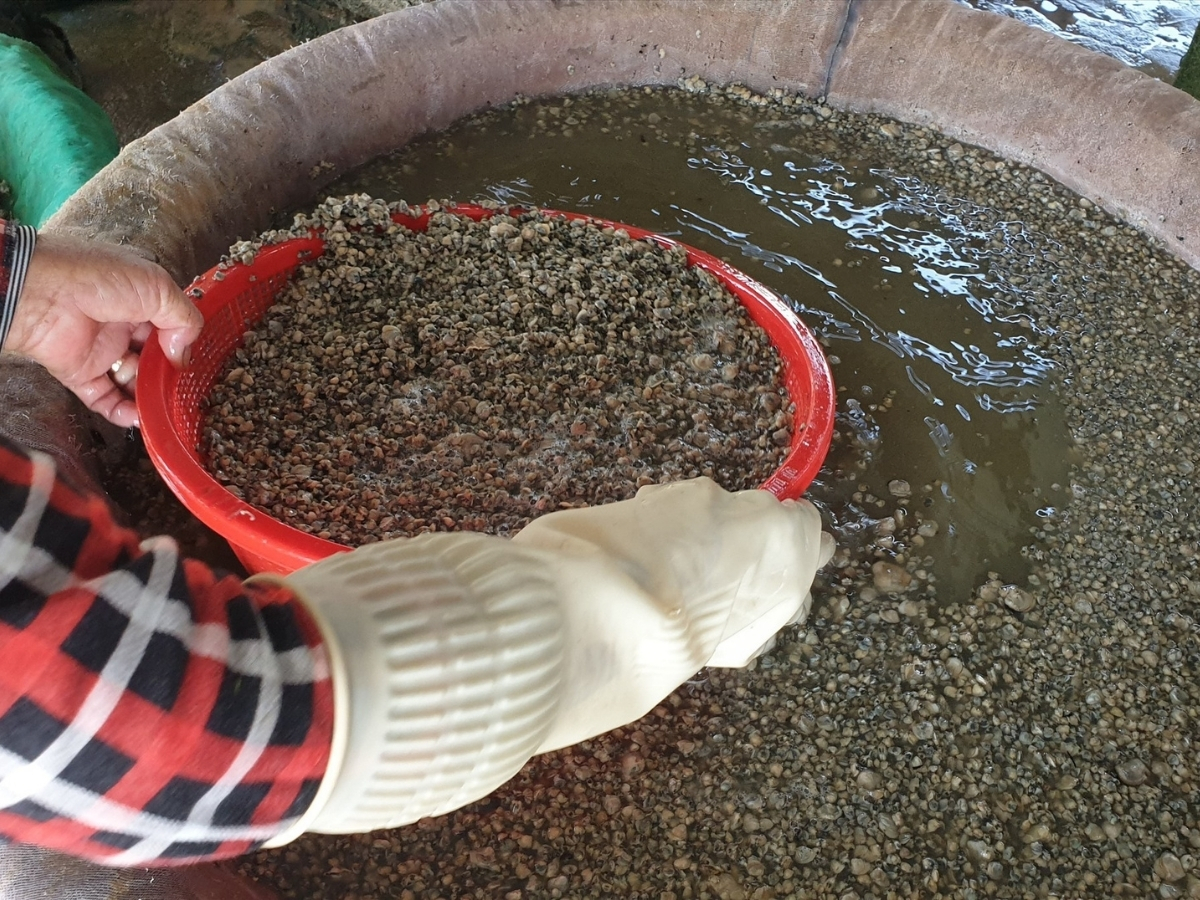 The process of filtering clean clam meat after catching. (Source: Collected)