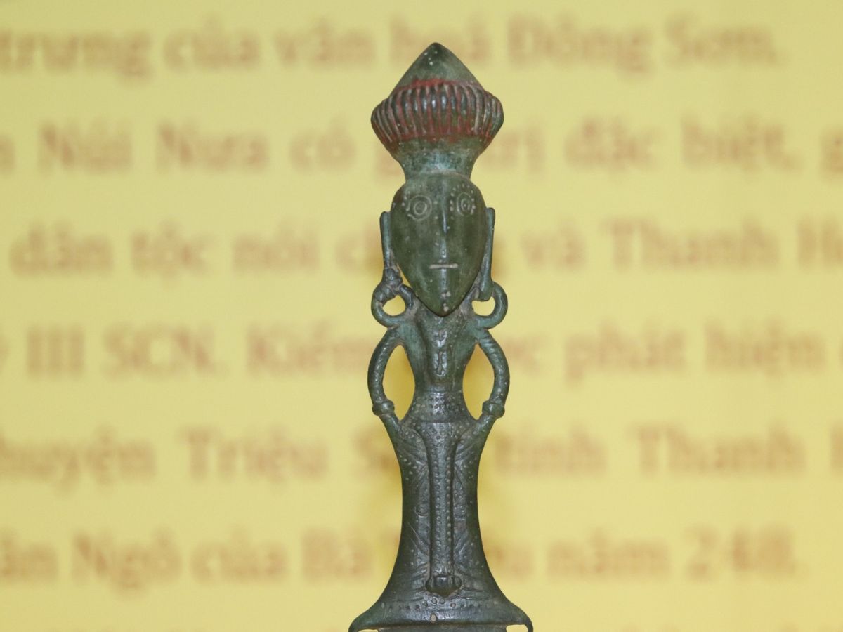 Điểm nhấn nổi bật khiến Kiếm ngắn núi Nưa trở nên nổi tiếng chính là cán kiếm được chạm khắc hình một phụ nữ quyền lực, liền khối với lưỡi kiếm. Đây không chỉ là minh chứng cho trình độ nghệ thuật thủ công tinh xảo của người Đông Sơn, mà còn phản ánh tư tưởng, văn hóa và đời sống tinh thần phong phú của cư dân thời kỳ đó. Hơn nữa, thanh kiếm còn gắn liền với truyền thuyết về Bà Triệu, nữ anh hùng khởi nghĩa chống quân Ngô vào đầu thế kỷ III tại vùng đất Thanh Hóa, mang ý nghĩa lịch sử và văn hóa sâu sắc.