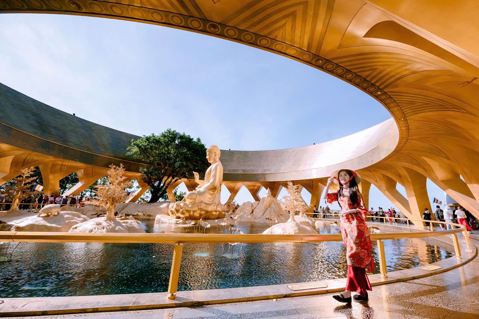 Ở độ cao gần 1.000 m, đỉnh Núi Bà Đen những ngày đầu năm mới trở thành tâm điểm thu hút du khách đến tham quan, chiêm bái. Tính từ Mùng 1 Tết, mỗi ngày có hàng nghìn lượt khách đi cáp treo lên núi Bà Đen, hành hương tại hệ thống chùa Bà cổ kính gắn liền với huyền thoại Linh Sơn Thánh Mẫu Bồ Tát. Trên đỉnh núi là hệ thống các công trình văn hoá tâm linh kỳ vĩ, nổi bật với Tượng Phật Bà Tây Bổ Đà Sơn bằng đồng cao nhất châu Á trên đỉnh núi, tôn tượng Di Lặc Bồ Tát bằng đá sa thạch lớn hàng đầu thế giới. Đặc biệt năm nay, tôn tượng Đức Phật Câu Na Hàm Mâu Ni trong sắc vàng hoàng kim trở thành tâm điểm trên đỉnh núi, nơi du khách chiêm bái và dâng lời nguyện ước về năm mới tài lộc, thịnh vượng.