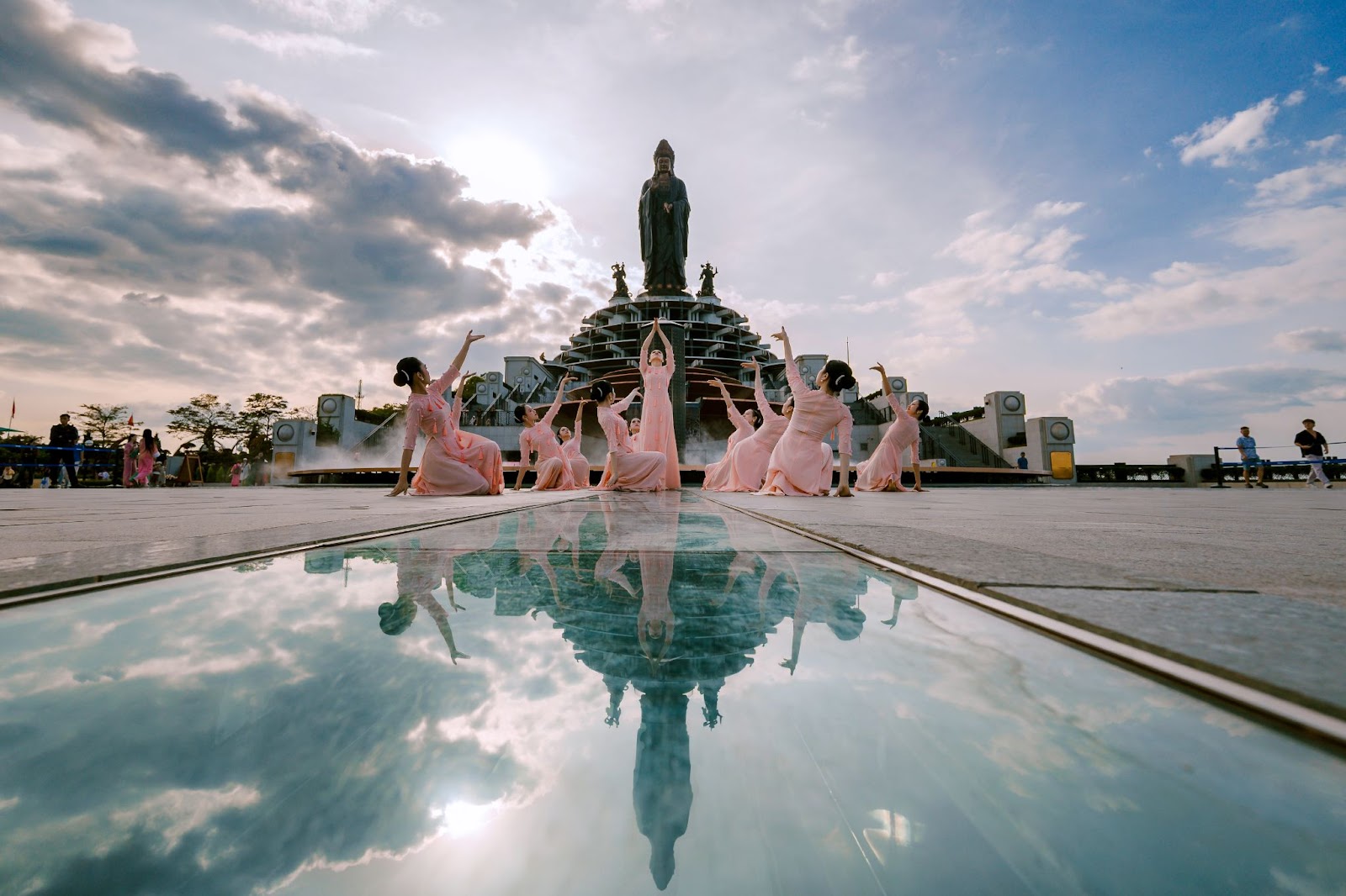 Đặc biệt, trên đỉnh núi, các tôn tượng kỳ vĩ là những dấu ấn tâm linh độc đáo thu hút du khách đến chiêm bái. Nơi đây, du khách thành kính dâng hoa, cầu nguyện cho một năm mới vạn sự hanh thông trước đại tượng Phật Bà Tây Bổ Đà Sơn ẩn hiện trong màn sương mỏng, tôn tượng Bồ Tát Di Lặc với nụ cười hoan hỉ như ban phát niềm vui cho chúng sinh, và tượng Phật Câu Na Hàm Mâu Ni trong sắc vàng hoàng kim đại diện cho tài lộc, thịnh vượng trong năm mới.