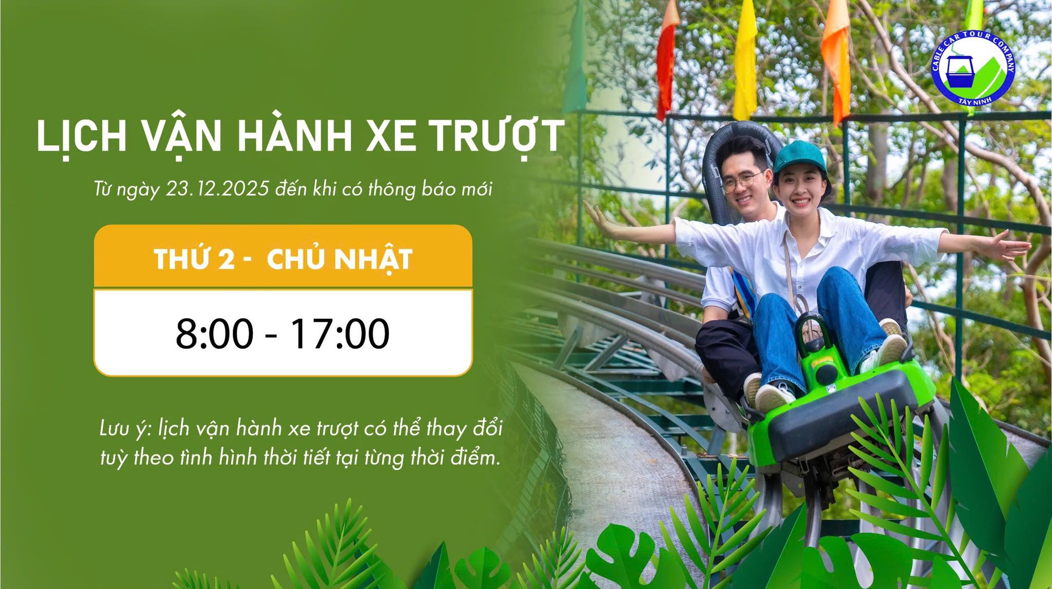[THÔNG BÁO] LỊCH VẬN HÀNH CÁP TREO XE TRƯỢT TỪ NGÀY 23.12.2025