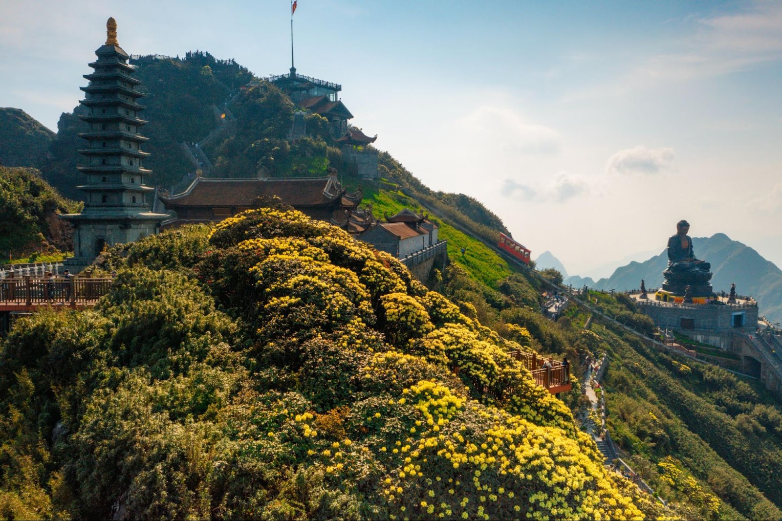 Cùng thời điểm, những thảm hoa Đỗ Quyên trên dãy Hoàng Liên Sơn cũng bung nở rực rỡ, tô điểm thêm cho bức tranh thiên nhiên ngoạn mục của Fansipan thêm kỳ vĩ và đem đến những trải nghiệm đa sắc màu cho du khách dịp lễ 30/4, 1/5.