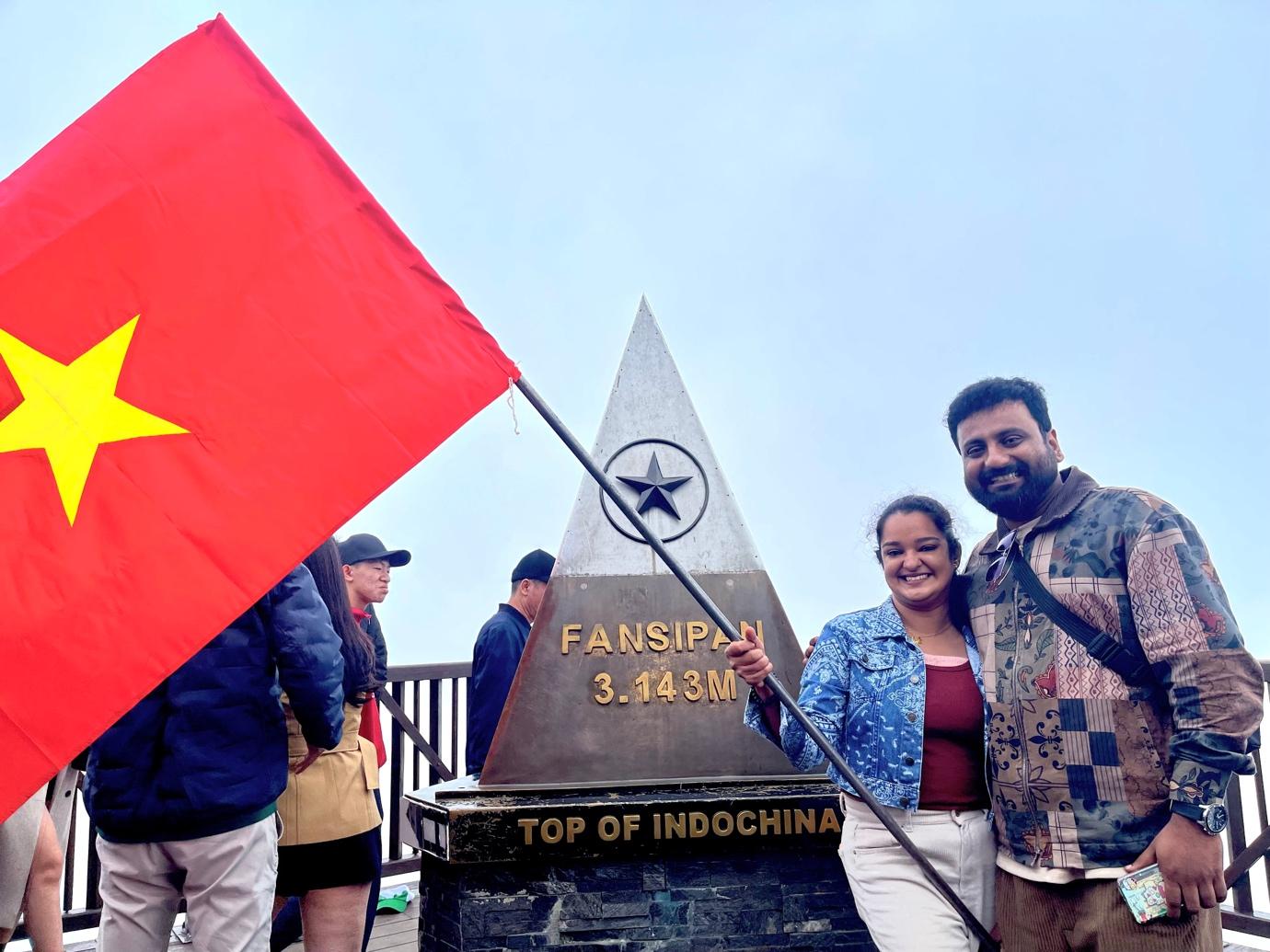 Không chỉ du khách Việt, nhiều du khách quốc tế cũng hào hứng tham gia, hòa mình vào không khí lễ hội và tìm hiểu những giá trị văn hóa – lịch sử của Việt Nam. “Hành trình bằng cáp treo đã mở ra trước mắt tôi những khung cảnh thiên nhiên tuyệt đẹp. Và khi đứng tại cột mốc 3143 m này, tận mắt chứng kiến khoảnh khắc hàng trăm du khách cùng nghiêm trang thực hiện nghi thức chào cờ và ngắm nhìn lá cờ Việt Nam tung bay giữa trời, đó thực sự là một trải nghiệm rất ấn tượng và đáng nhớ” - du khách Mira đến từ Ấn Độ ấn tượng chia sẻ.