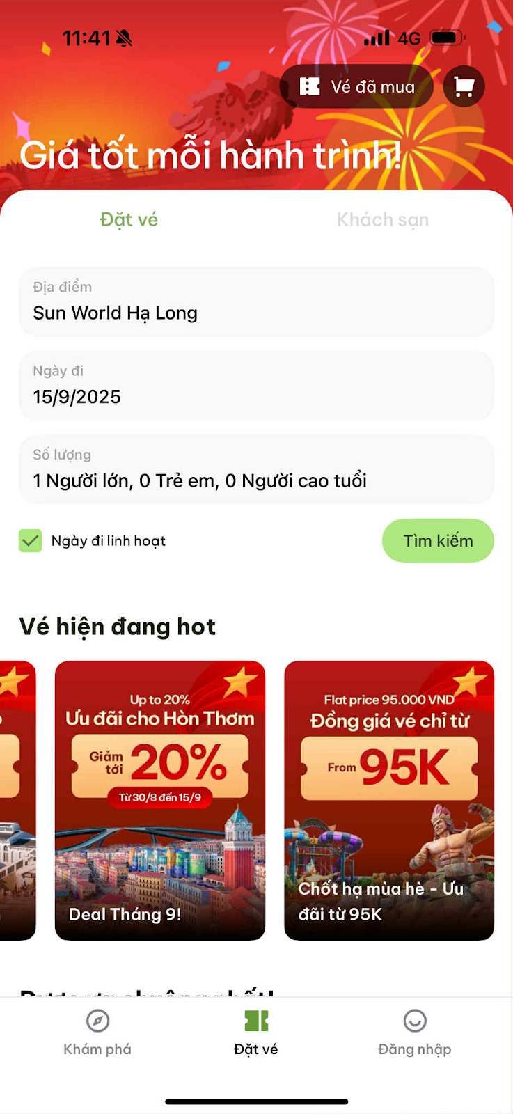 Ưu đãi lên đến 30% khi đặt vé trên ứng dụng Sun Paradise Land