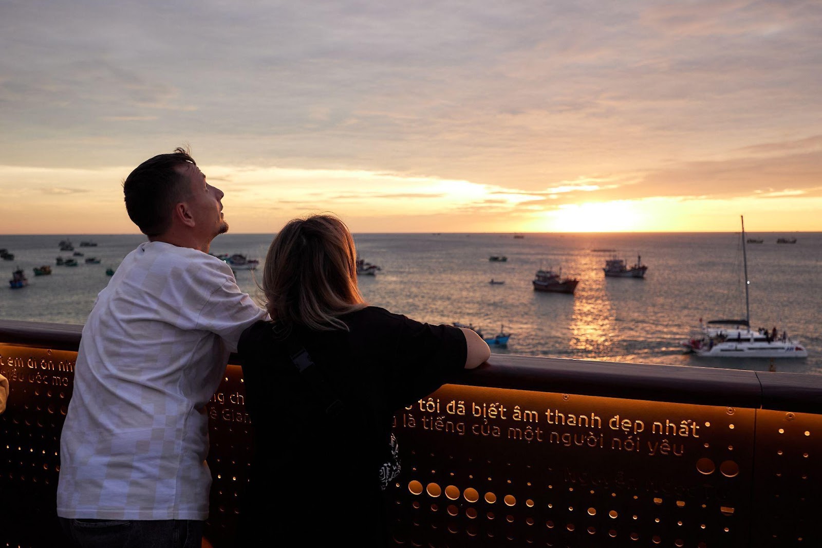 Mỗi chiều, hoàng hôn màu huyết dụ loang khắp biển trời, như muốn ôm trọn những đôi nhân tình. Trong khoảnh khắc ấy, những nụ hôn ngọt ngào được trao đi, những lời cầu hôn ngỏ lời dường như đã lấp đầy mọi khoảng trống, tạo nên một kiệt tác hội họa của thiên nhiên và con người. Cũng vì thế, không khó hiểu khi Cầu Hôn được truyền thông quốc tế vinh danh là điểm đến của hoàng hôn, của tình yêu.
